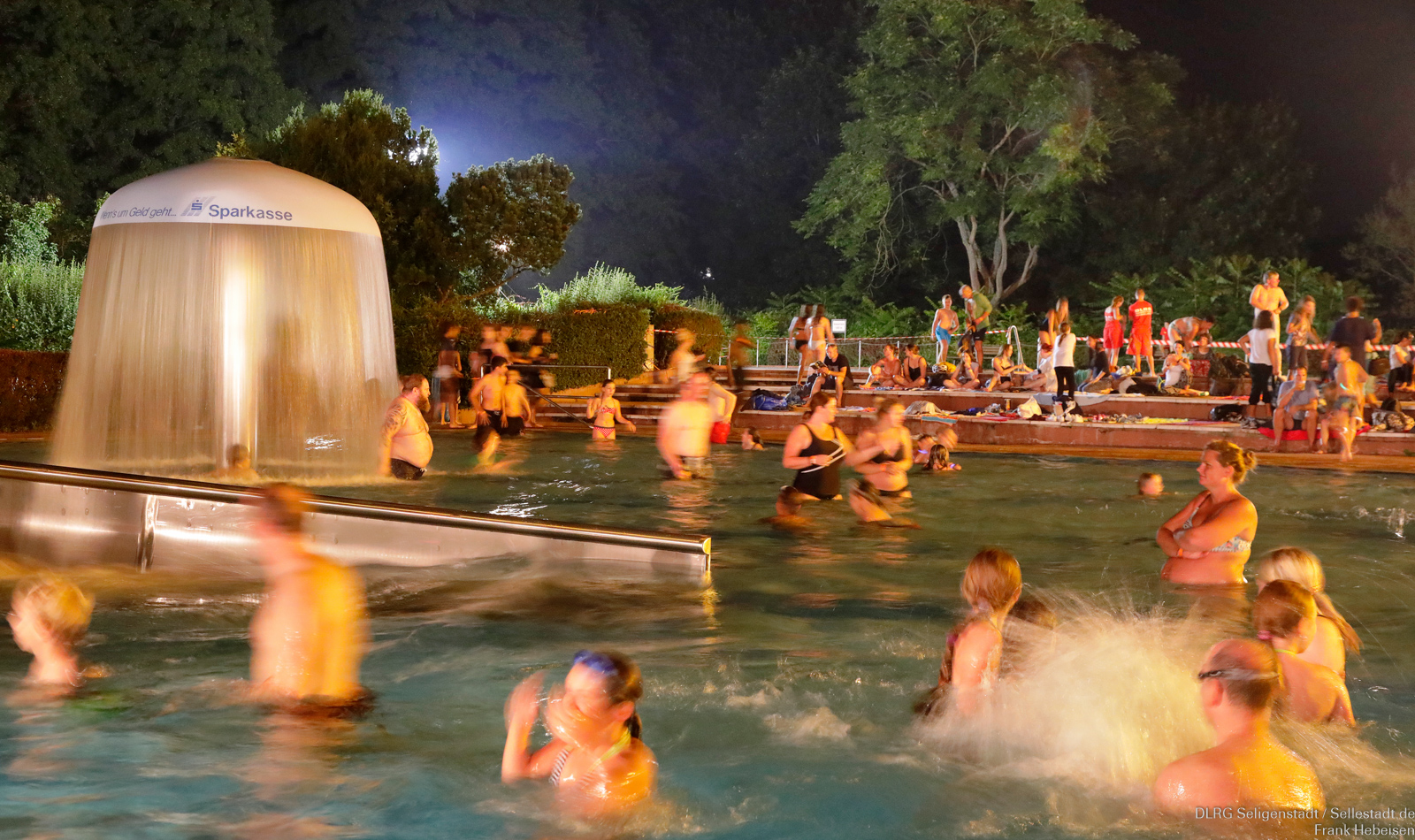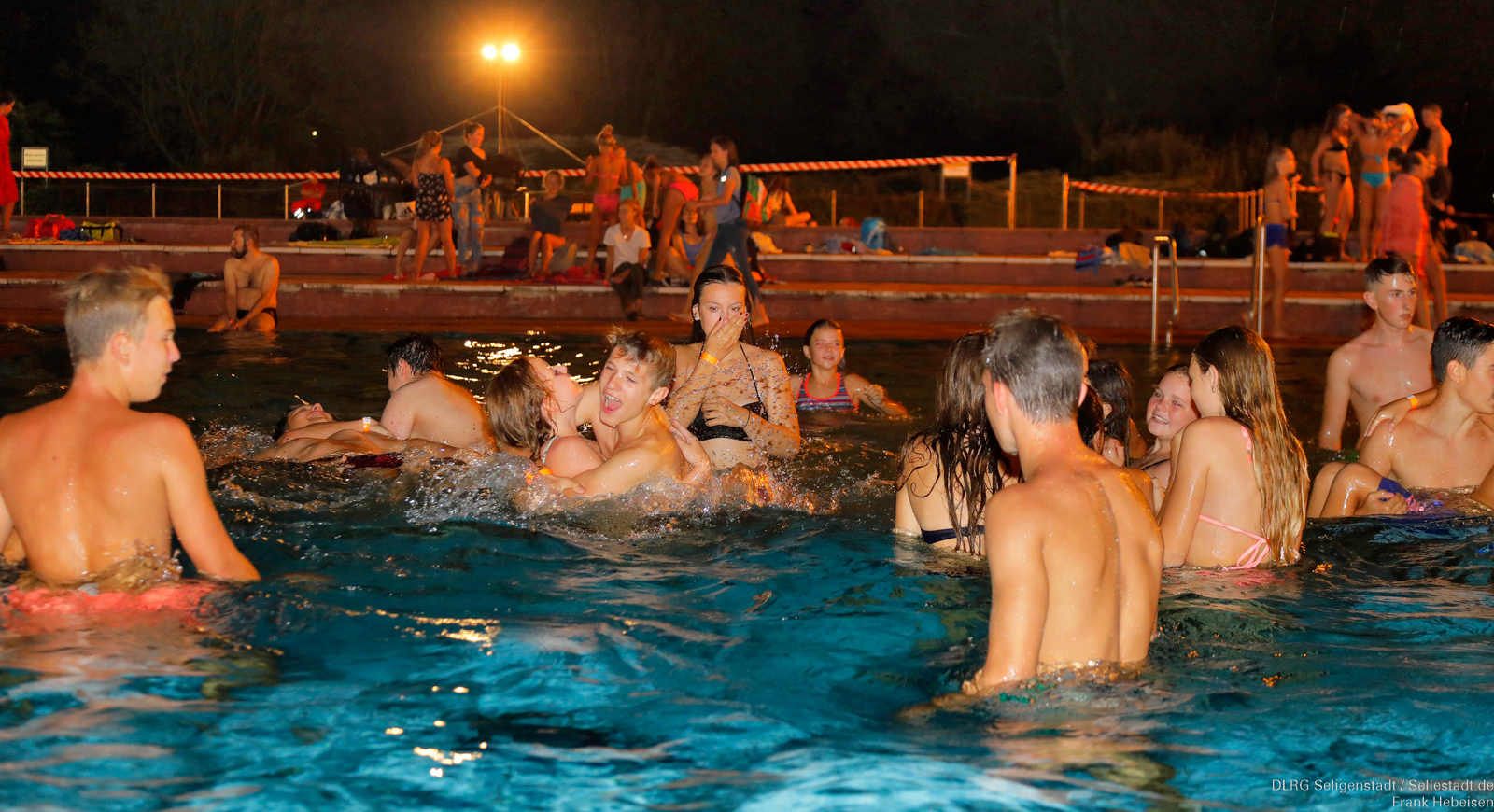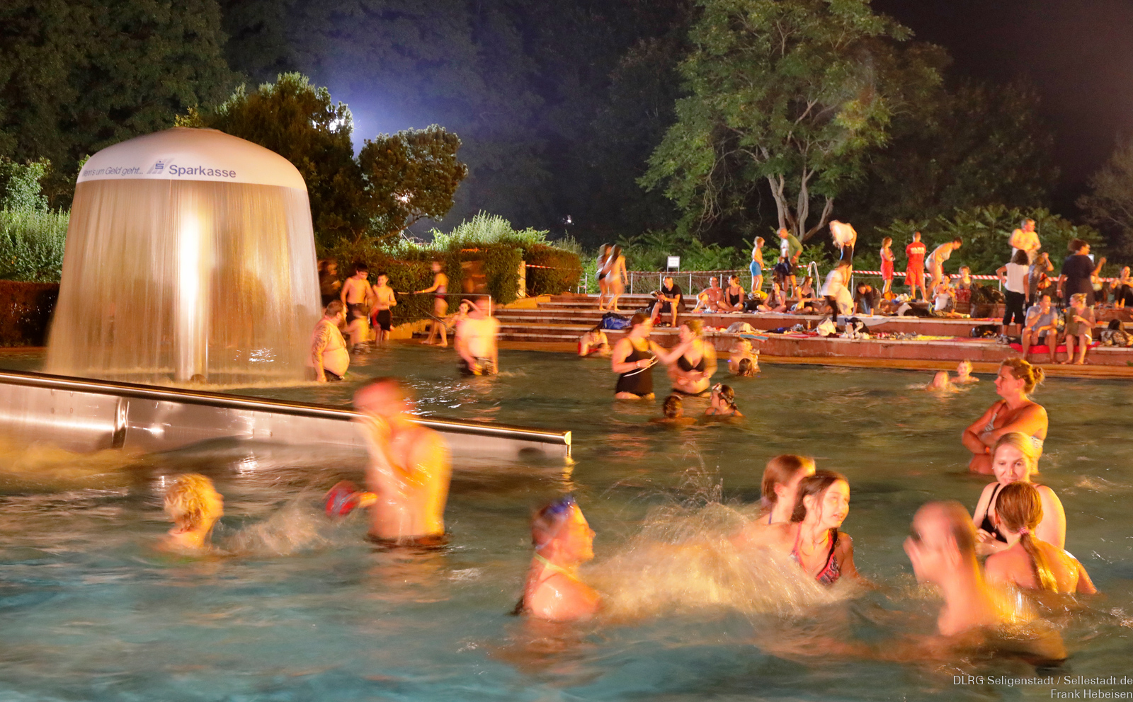 Das Wetter reichte mit 28 Grad zwar nicht an den Rekord des letzten Jahres heran, dafür war die Stimmung und die Atmosphäre mit vielen bunten Strahlern und verbesserter Musikbeschallung des Nichtschwimmerbeckens bestens.