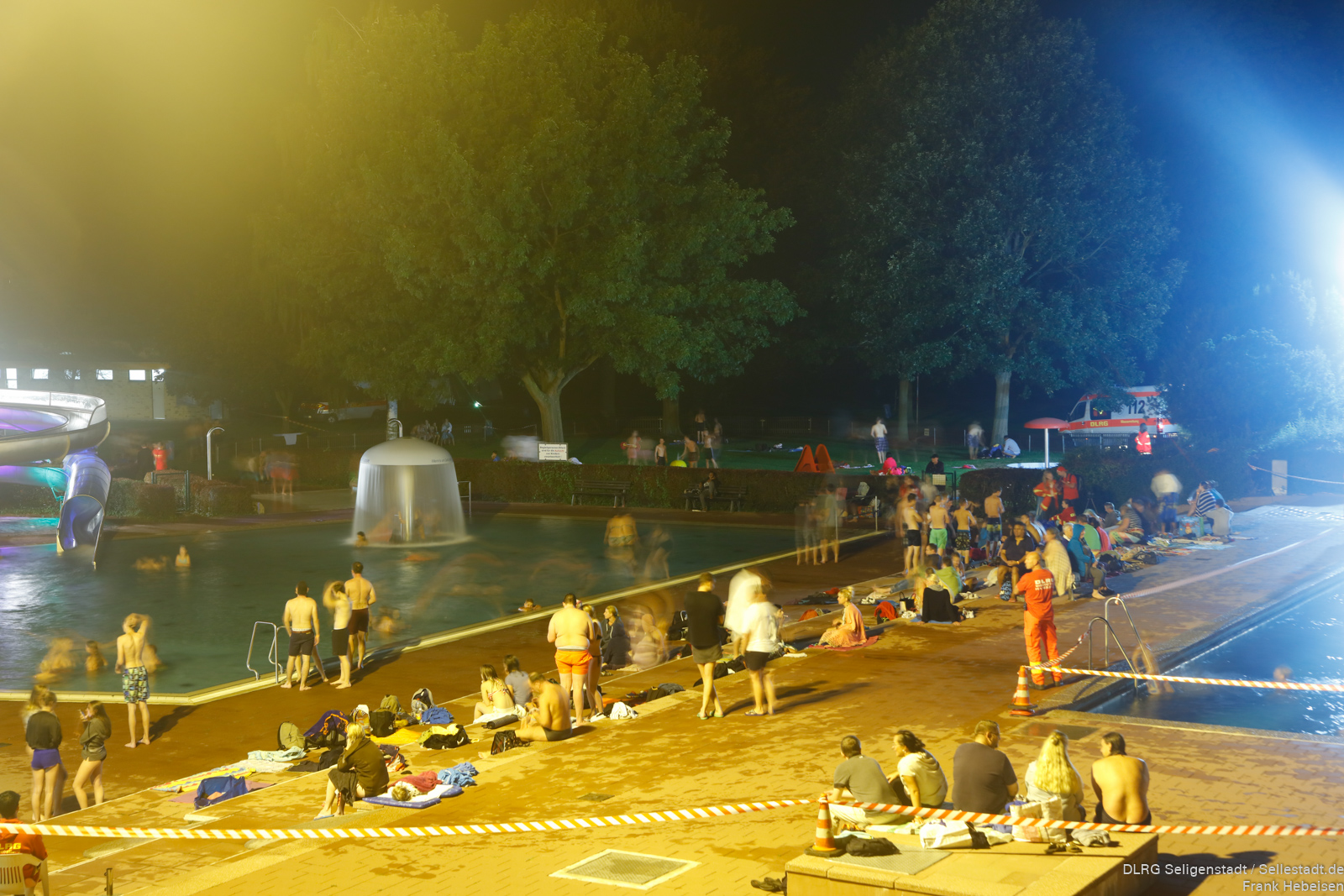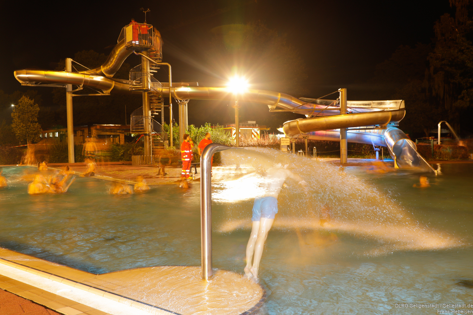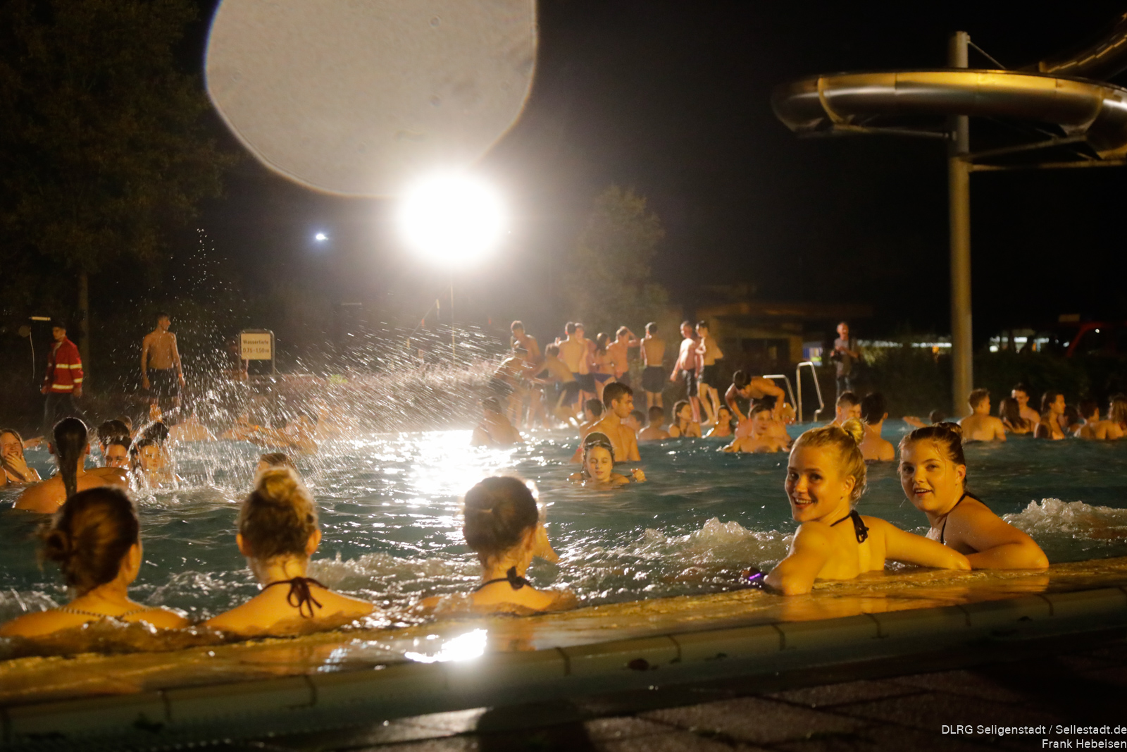 Insgesamt konnte sich die DLRG Seligenstadt über 550 Badegäste freuen, die Mehrzahl davon im jugendlichen Alter. Zum ersten Mal beim Nachtschwimmen war auch neben der Rutsche, dem Nichtschwimmer- und Schwimmerbecken der Kinderbereich geöffnet. So konnten sich Jugendliche, Familien und Schwimmer gut verteilen.