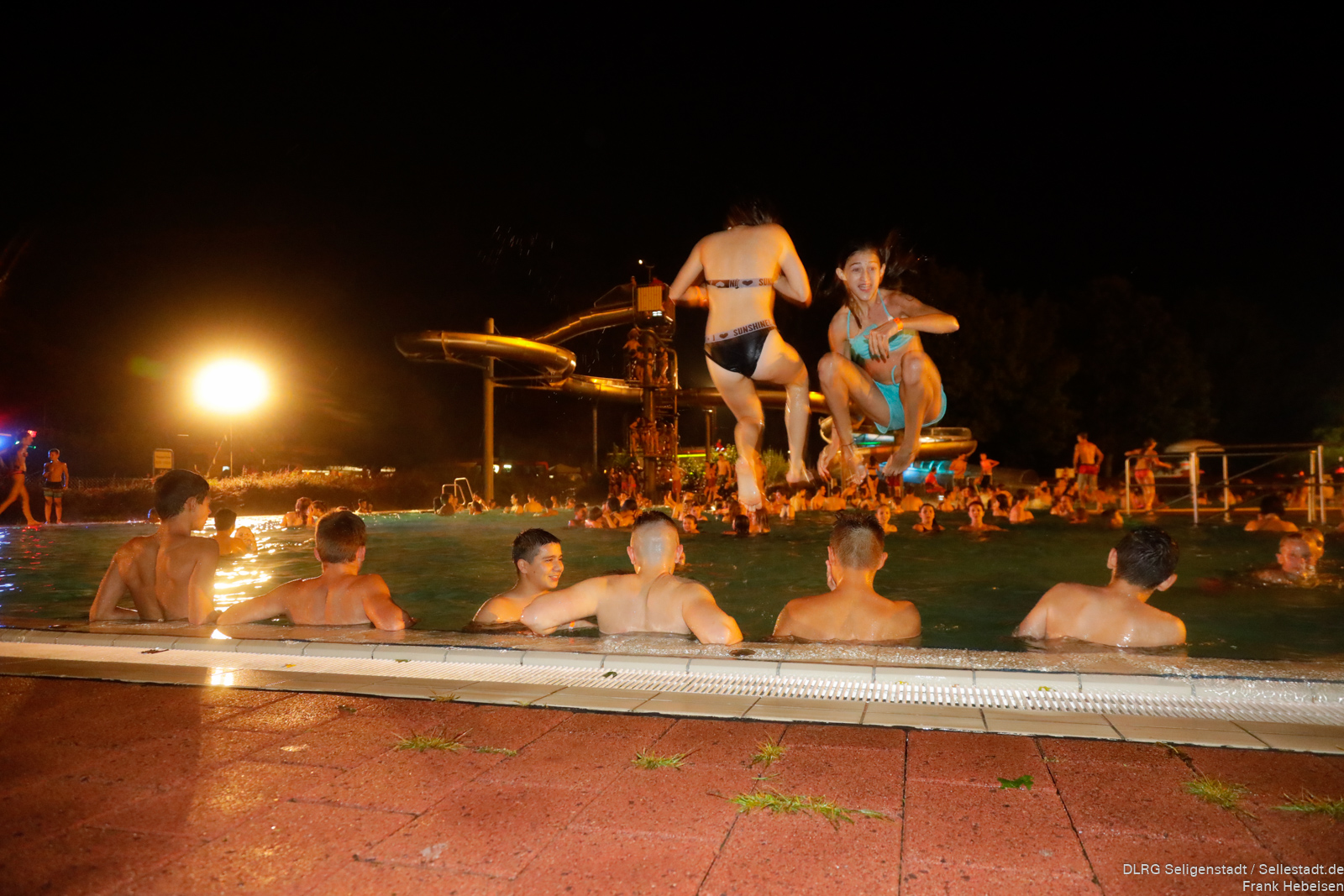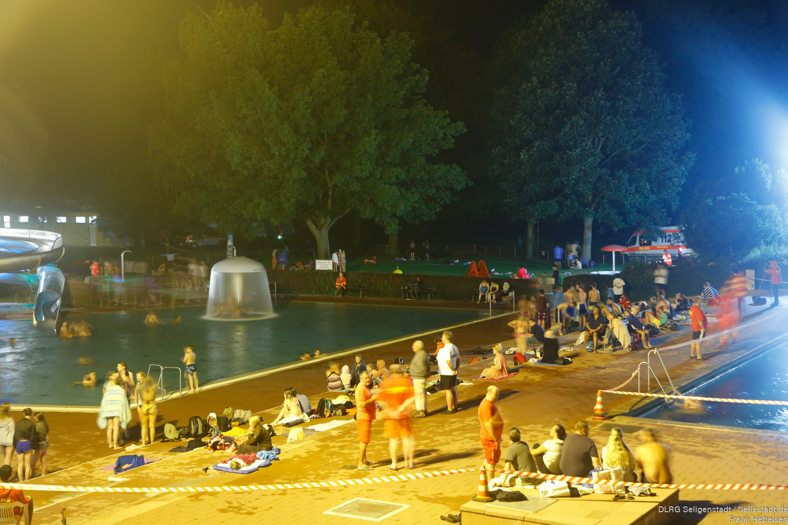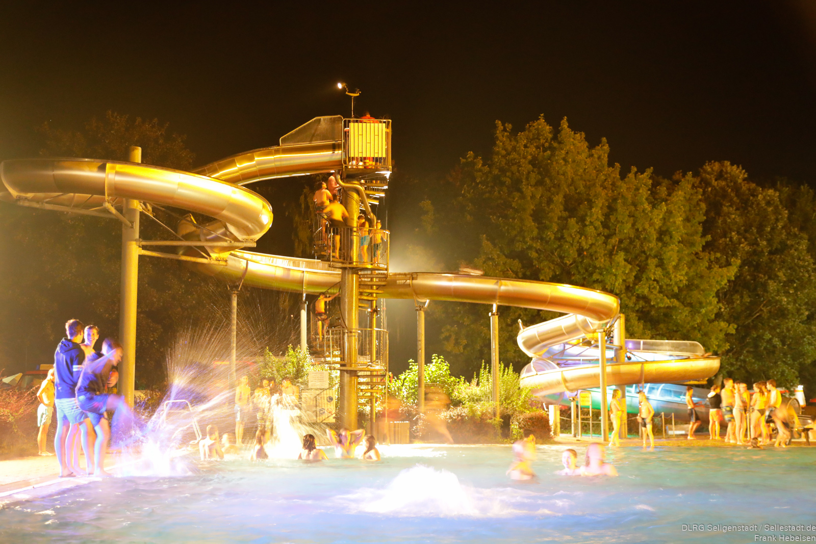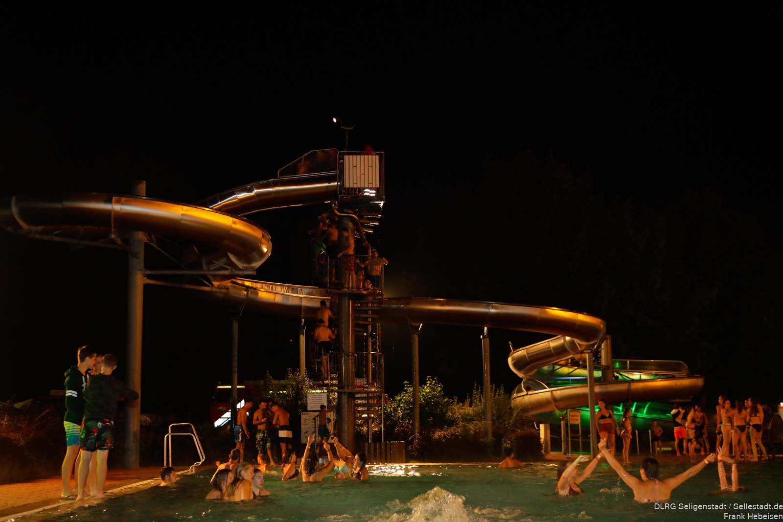 Insgesamt konnte sich die DLRG Seligenstadt über 550 Badegäste freuen, die Mehrzahl davon im jugendlichen Alter. Zum ersten Mal beim Nachtschwimmen war auch neben der Rutsche, dem Nichtschwimmer- und Schwimmerbecken der Kinderbereich geöffnet. So konnten sich Jugendliche, Familien und Schwimmer gut verteilen.