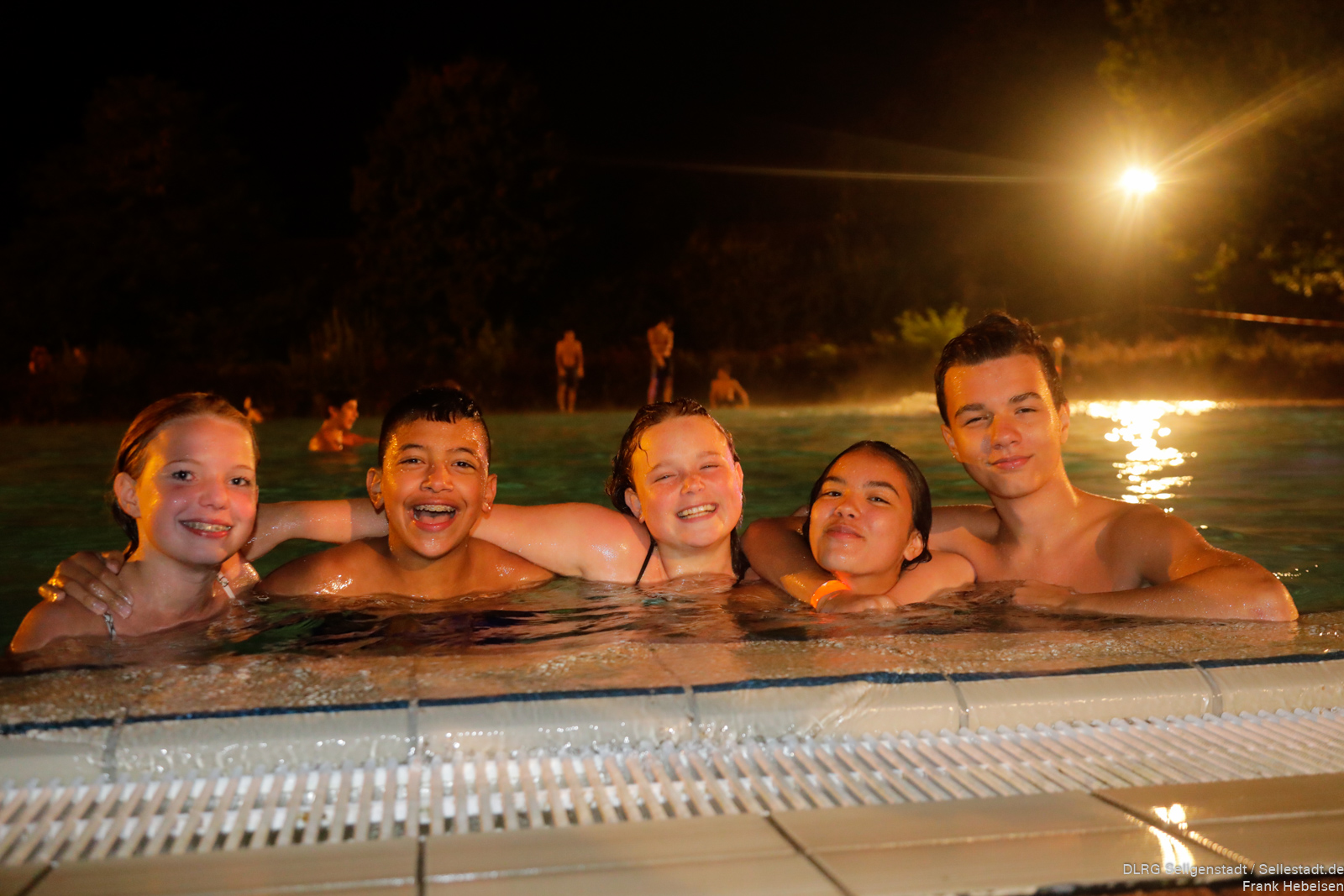 Länger blieben nur noch 20 Kinder und Jugendlichen der DLRG, die nach dem Nachtschwimmen im Freibad zelteten. Die meisten konnten nicht genug bekommen vom kühlen Nass und sind am nächsten Morgen direkt wieder schwimmen gegangen.