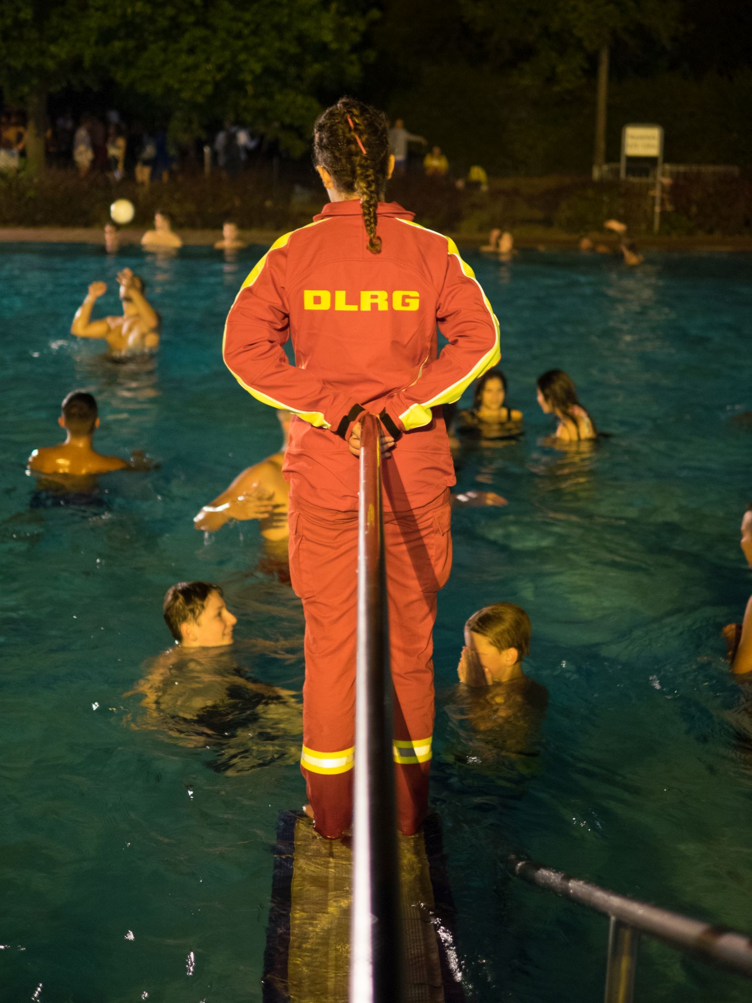 Insgesamt konnte sich die DLRG Seligenstadt über 900 Badegäste freuen, die Mehrzahl davon im jugendlichen Alter. Zum ersten Mal beim Nachtschwimmen war auch neben der Rutsche, dem Nichtschwimmer- und Schwimmerbecken auch der Sprungturm geöffnet. So konnten sich Jugendliche, Familien und Schwimmer gut verteilen.