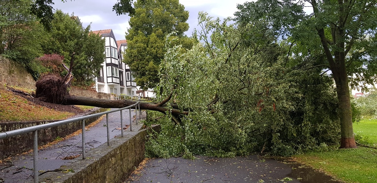 Nach Informationen des Wetterdienstes soll es sich nicht um einen Tornado oder eine Windhose, sondern eine Fallböen, sogenannte „Downbursts“, gehandelt haben.
